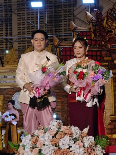 💠 ผู้เข้าร่วมเดินแบบผ้าไทยใส่ให้สนุก จำนวนทั้งสิ้น 18 คู่ 36 ท่าน ซึ่งมาจากผู้แทนส่วนราชการ องค์กรปกครองส่วนท้องถิ่น ผู้นำชุมชน คณะกรรมการกองทุนพัฒนาบทบาทสตรี ฯลฯ โดยมีการแต่งกายชุดผ้าไทยประยุกต์ และชุดผ้าไทยแบบดั้งเดิม สร้างบรรยากาศความสวยงาม ให้ค่ำคืนนี้ เต็มไปด้วยศิลปะและวัฒนธรรม ที่วิจิตรปราณีต และทรงคุณค่า