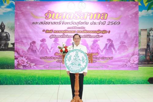 💠 เรือโท ภัทรชัย ขันธหิรัญ รองผู้ว่าราชการจังหวัดสุโขทัย เป็นประธานในพิธีเปิดโครงการวันสตรีสากลและกิจกรรมสมัชชาสตรีระดับจังหวัด ประจำปี 2569 ภายใต้แนวคิด “สิทธิความยุติธรรม และเสียงของผู้หญิง : สู่สังคมที่ไม่ทอดทิ้งใครไว้ข้างหลัง” โดยมีนางสาวนพพนา เจริญธรรม พัฒนาสังคมและความมั่นคงของมนุษย์จังหวัดสุโขทัย กล่าวรายงาน